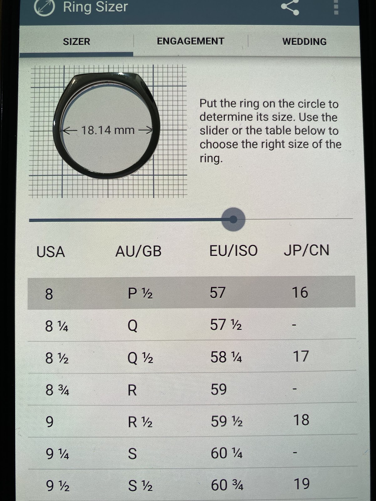 אם מדדת לפי אפליקציית RING SIZER בחרי במידה שיצאה לך בטבלת USA