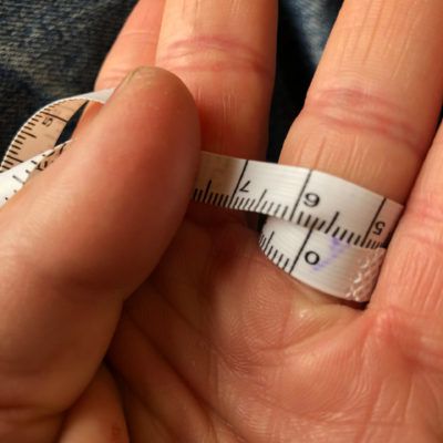 - מניחים את הטבעת על הסרגל או על סרט המדידה